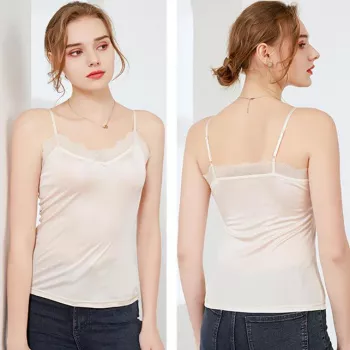 Luxurious Lace Trimmed Silk Camisole - V-Neck, Thin Knit Design