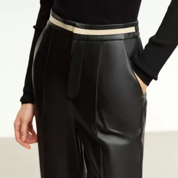 Women's PU Leather Contrast Spliced Ankle-Length Pants